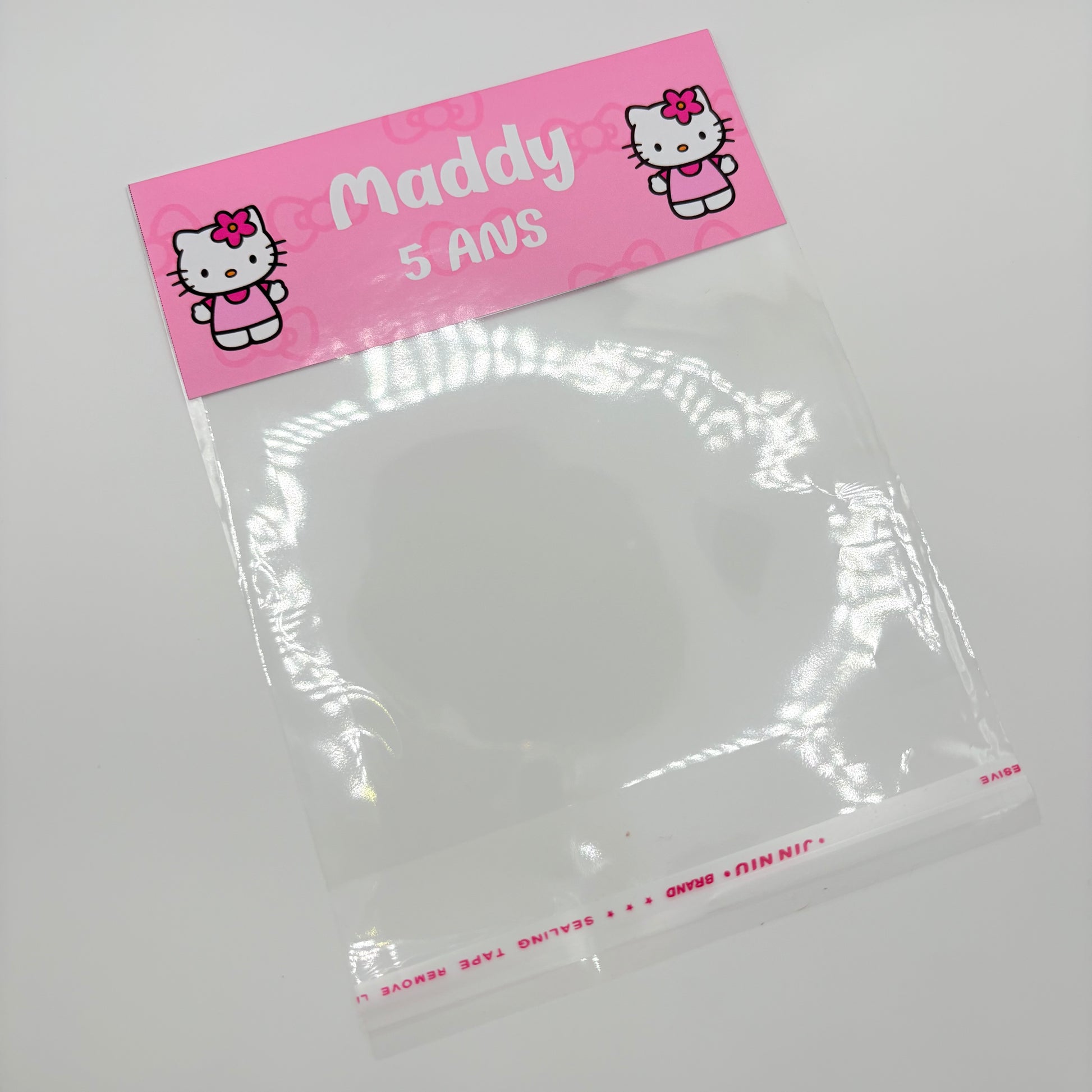 Apportez une touche unique à vos fêtes avec notre sachet de bonbons personnalisable ! Parfait pour les anniversaires, baptêmes, fêtes d’école ou tout autre événement, ce sachet transparent est accompagné d’une étiquette cartonnée que vous pouvez personnaliser avec le prénom, l’âge et le thème de votre choix (ex. : personnages, couleurs, motifs…).